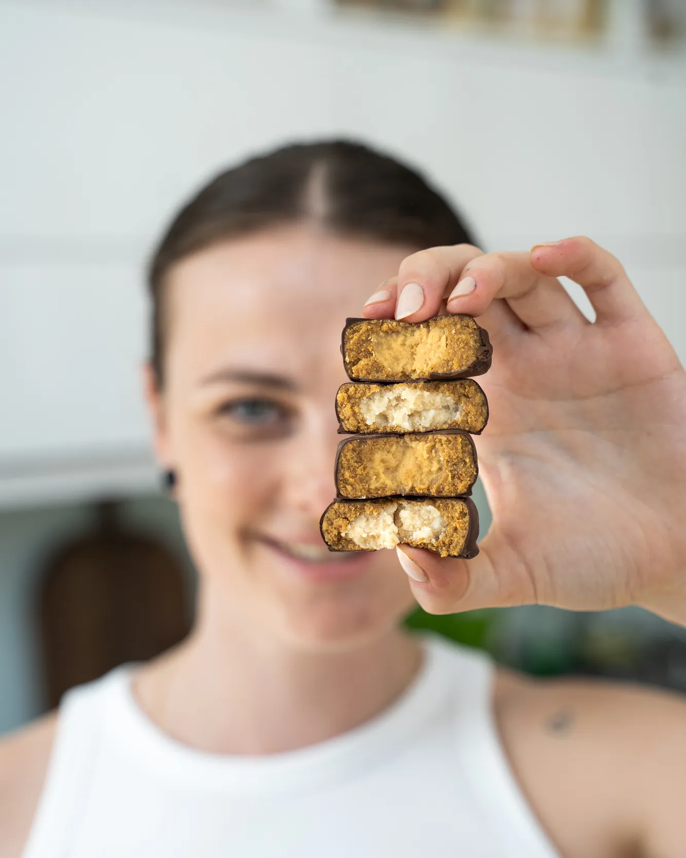 Redefinujeme vegánske proteínové chuťovky – a to tak, že ani ich najväčší odporca nespozná, že si práve pochutnáva 100% rastlinnej dobrote. Špeciálna receptúra nepečených bochníkov so super jemnou čokoládovou štruktúrou a rozplývajúcou sa náplňou nepripomína žiadne cookiesky, aké si doteraz ochutnal/a.Jednoduché prírodné zloženie
